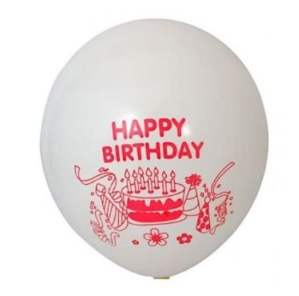 White Happy Birthday Printed Latex Balloons, 12inch