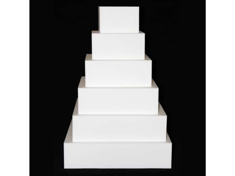 Square Cake Dummies are made from high density expanded polystyrene. The material is very dense and with better quality. Supplied as standard with a straight edge.