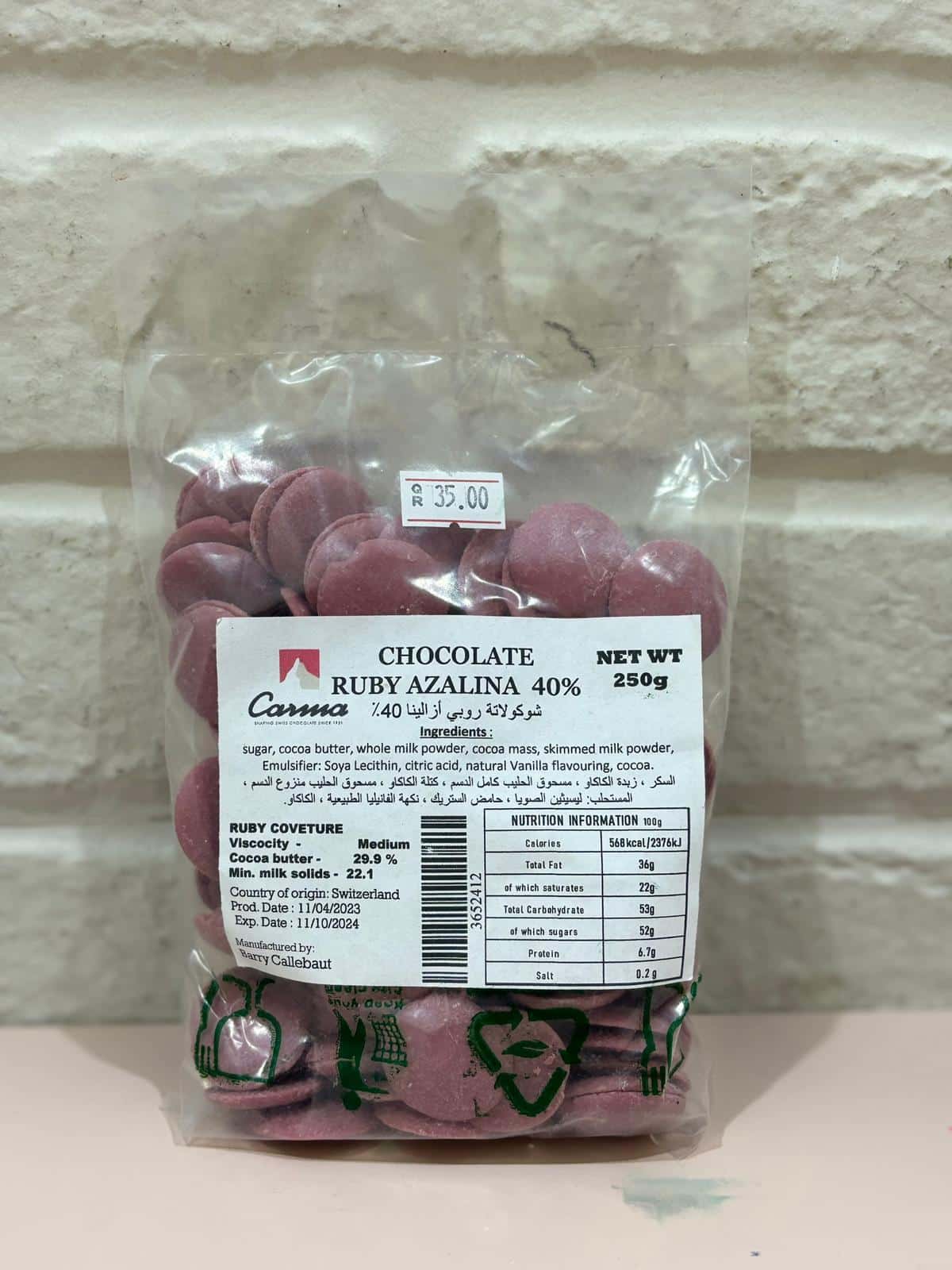 Chocolate Ruby Azalina 40%, 250g